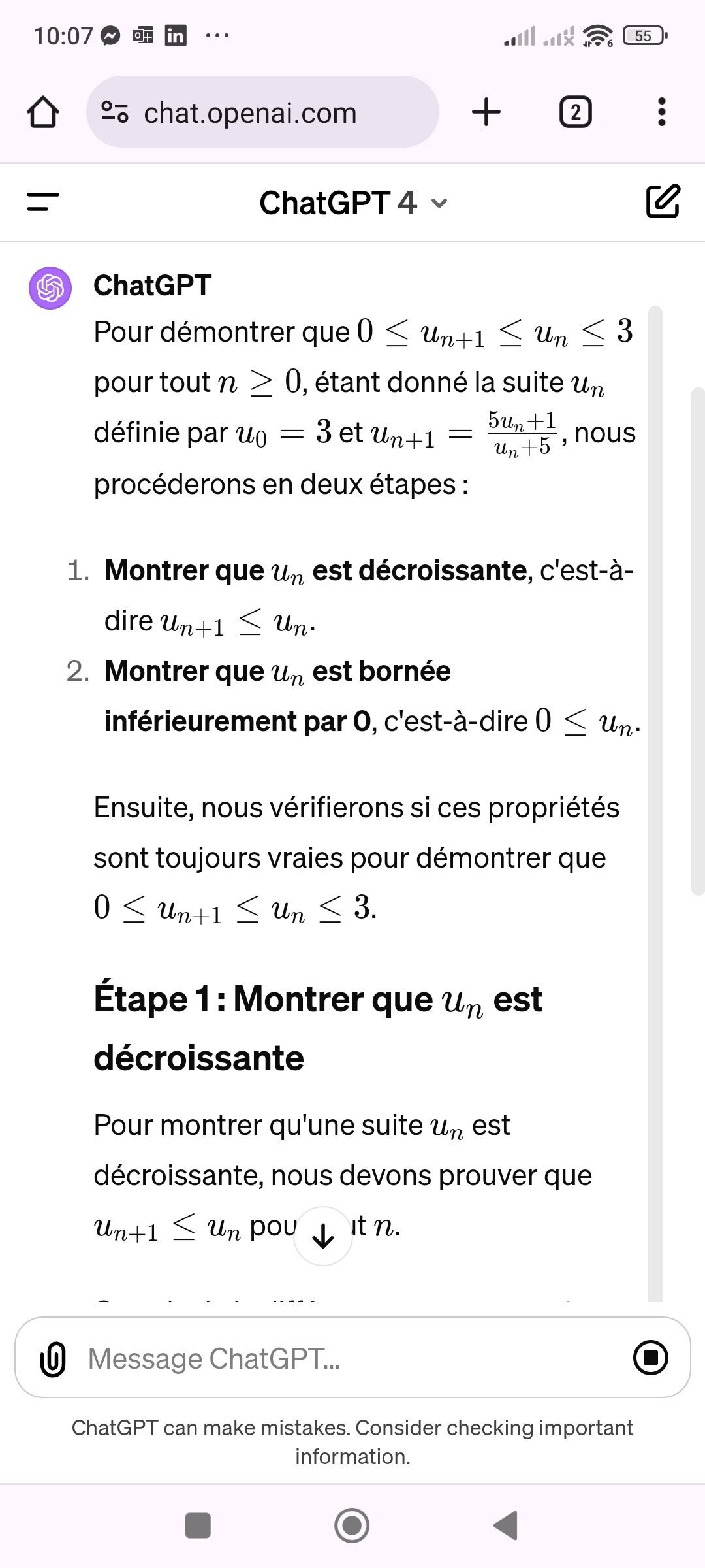 Mais je suis incapable de montrer que u_(n+2)<=u_(n+1)