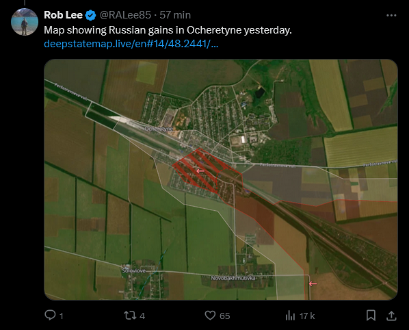 La Russie qui a vaillamment ajouté 5km² à ses conquêtes de ces derniers mois![]()