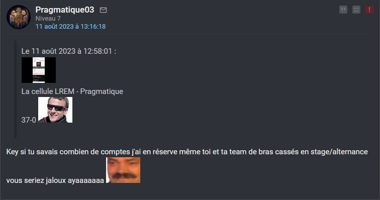 > > Le 24 avril 2024 à 20:04:50 bouboulefou5 a écrit :