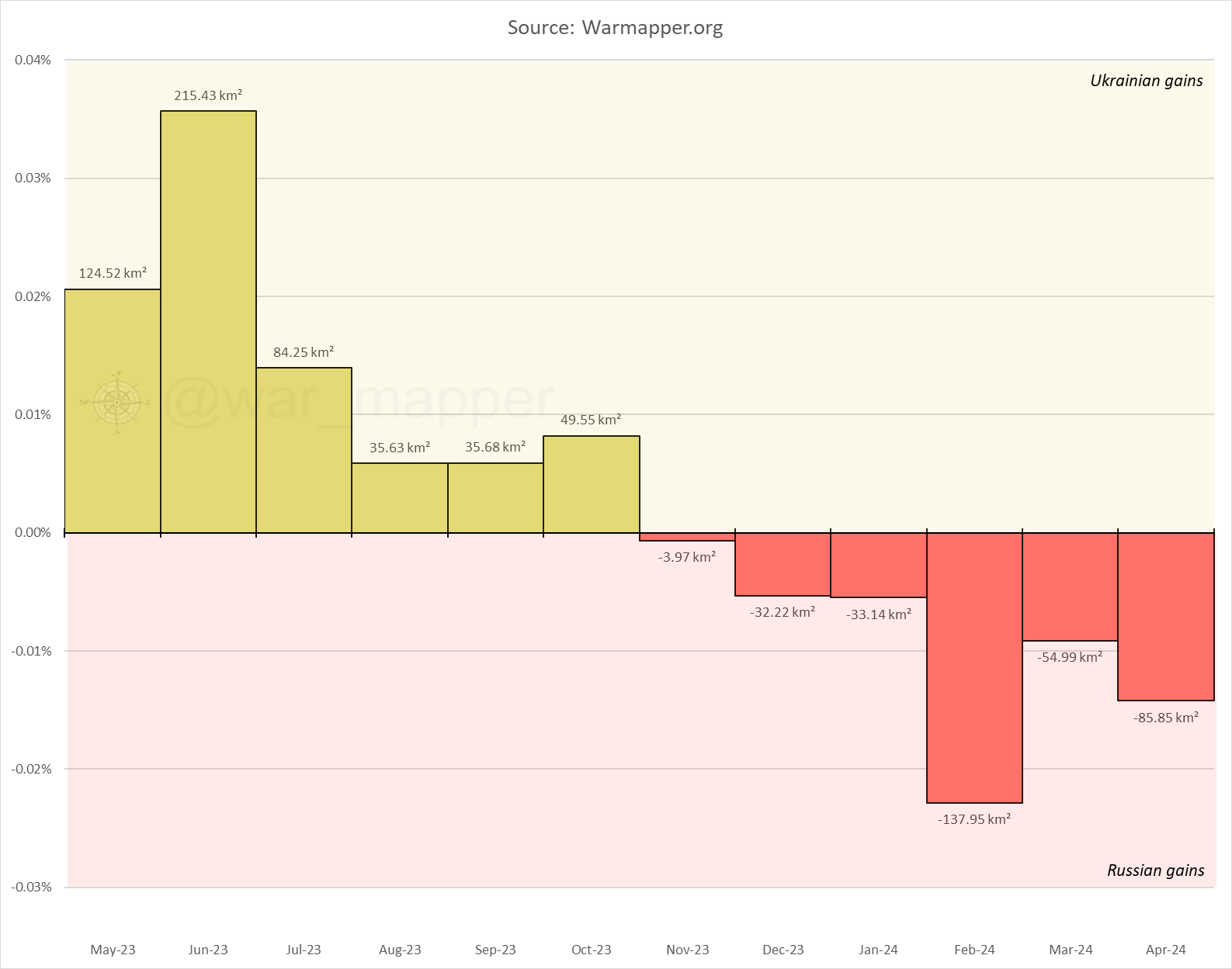https://twitter.com/War_Mapper/status/1786376277798056008Merci on voit grâce à ton graphe que la contre offensive russe est effectivement moins bien réussi !