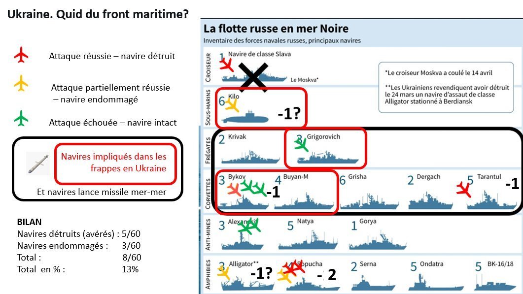 Le blogueur militaire russe *Fighterbomber* suggère de retirer tous les navires de guerre russes de la mer Noire compte tenu des événements actuels.Tôt ou tard, c'est ce qui va arriver. "soit tu sors, soit je te sors mais va falloir prendre une décision"