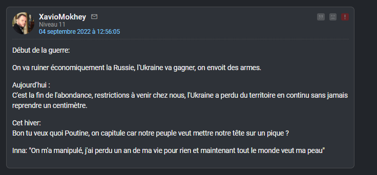 C'est fou, ce mec qui se trompe sur tout depuis bientôt 1 an continue d'avoir ses groupies alors qu'il a désormais la même crédibilité que Xavier Moreau.