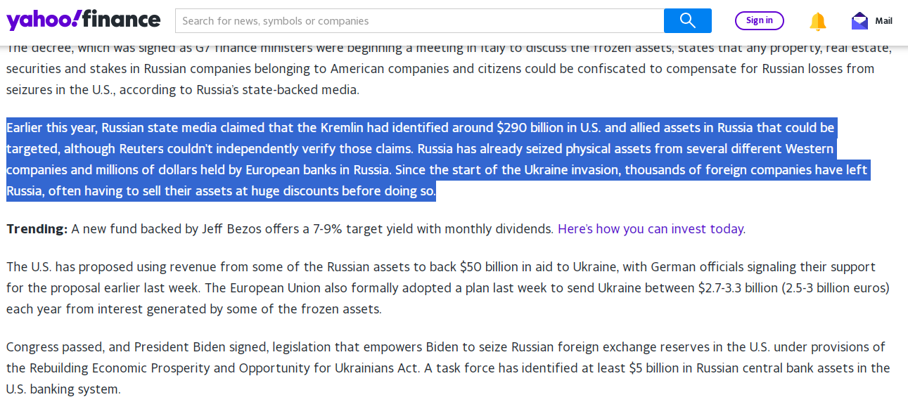 Et de toute façon, que ce soit vrai ou non, ton affirmation comme quoi ça nous bloquerait à saisir les actifs russes gelés pour la reconstruction (voir pour financer la guerre) est totalement faux.