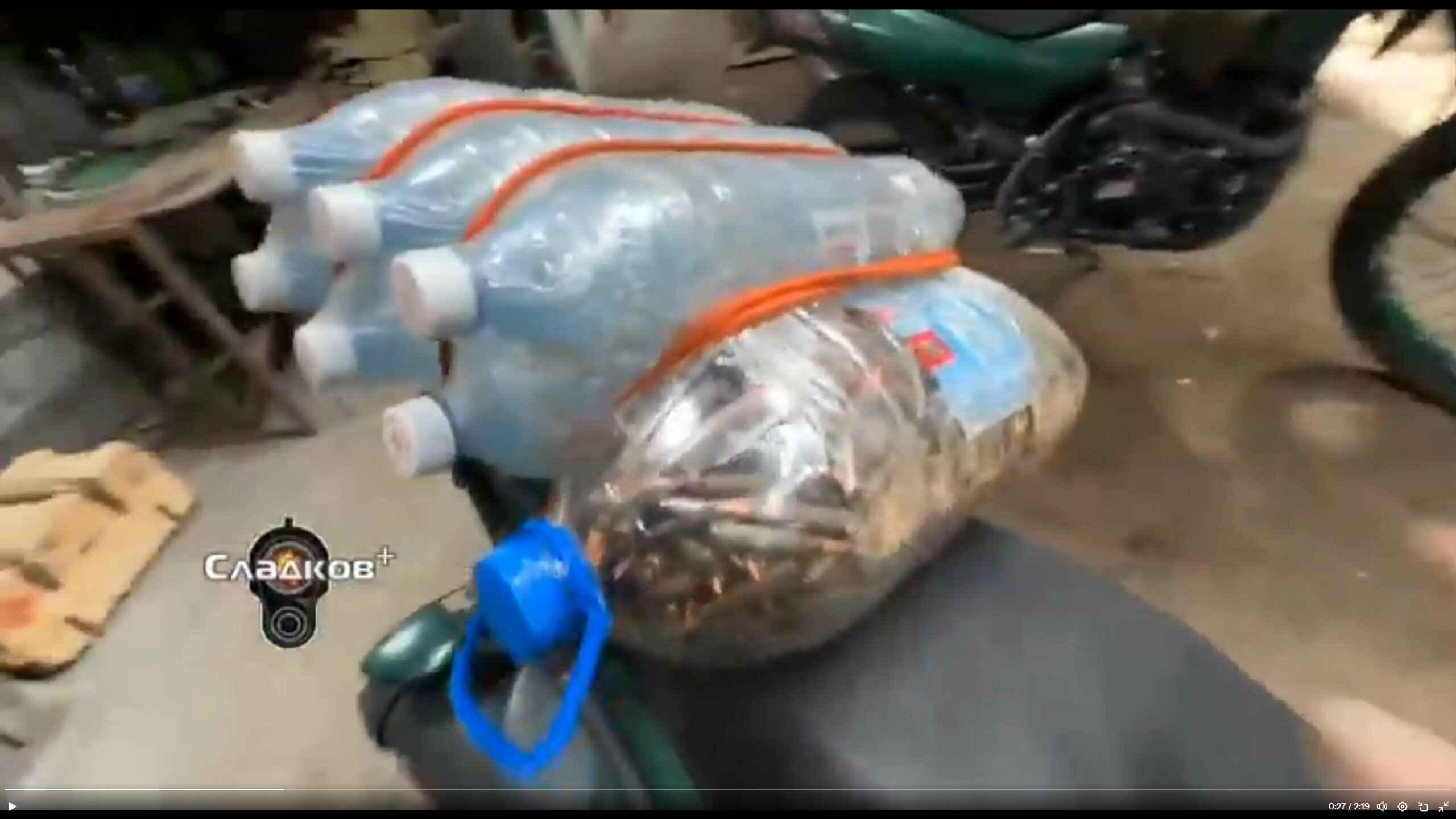 Les Russes préparent leur propre MadMax6 bouteille d'eau et une bouteille remplis de balle de fusil d'assaut en vrac, voila le paquetage du suicidaire en moto
