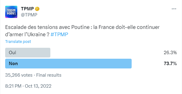 Au passage on est quand même passé de "Ah ah ton sondage montre que les français sont contre une intervention direct contre les Russes" a "Ton sondage est faux et manipulé: les français ne soutiennent pas en majorité l'Ukraine"