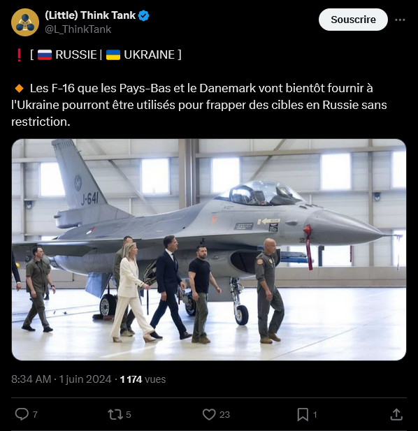 ...sauf que les missiles vont être en grande partie fournis par les américains, donc avec les restrictions américainsD'ici à ce que les avions arrivent ils auront peut-être changé d'avis, après je suis pas convaincu de l'impact des F-16 sur le conflit ,même si ça fait une arme en plus, par rapport à des millions d'obus supplémentaires par exemple.