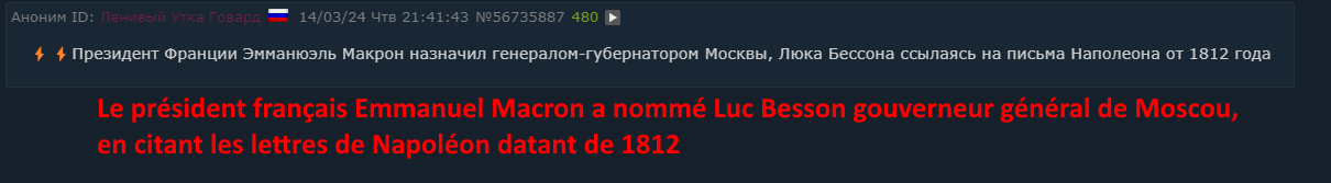 https://www.tf1info.fr/international/guerre-ukraine-russie-83-des-russes-satisfaits-de-vladimir-poutine-selon-un-sondage-d-un-institut-independant-2249911.htmlR3alityy, fier de poster sur le forum à quasi 50 ans, accuse tout le monde d'être des traitres macronistes payés par la maison blanche