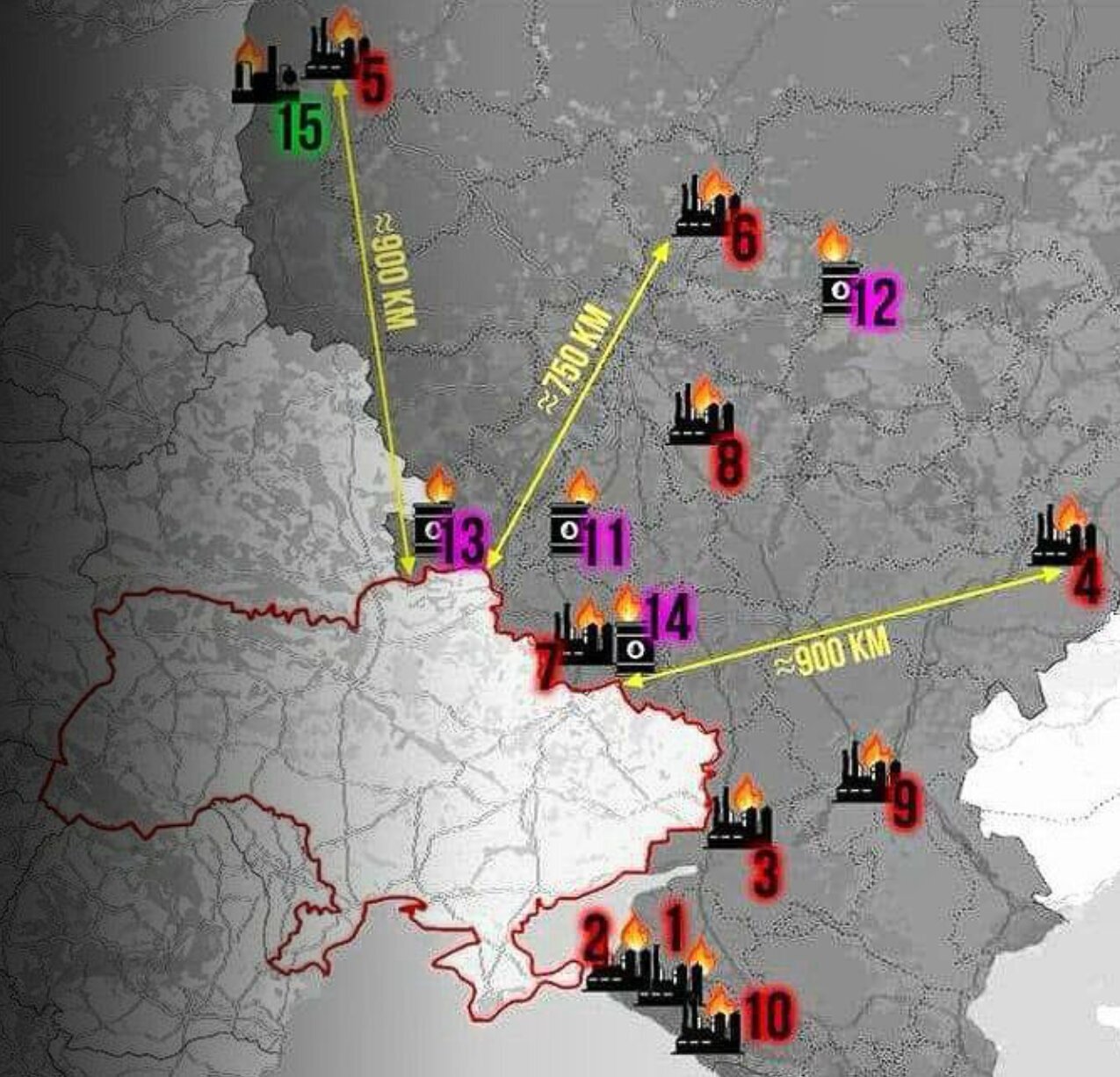 14 des 30 grandes raffineries de pétrole existantes sur le site 🇷🇺Russia sont endommagées.