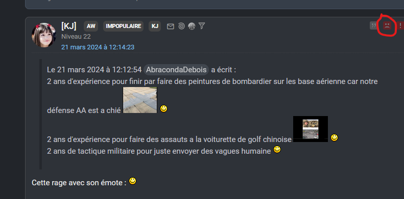 On vous connaît par coeur les bots boucleursNan tkt, faut pas prendre le forum au sérieux