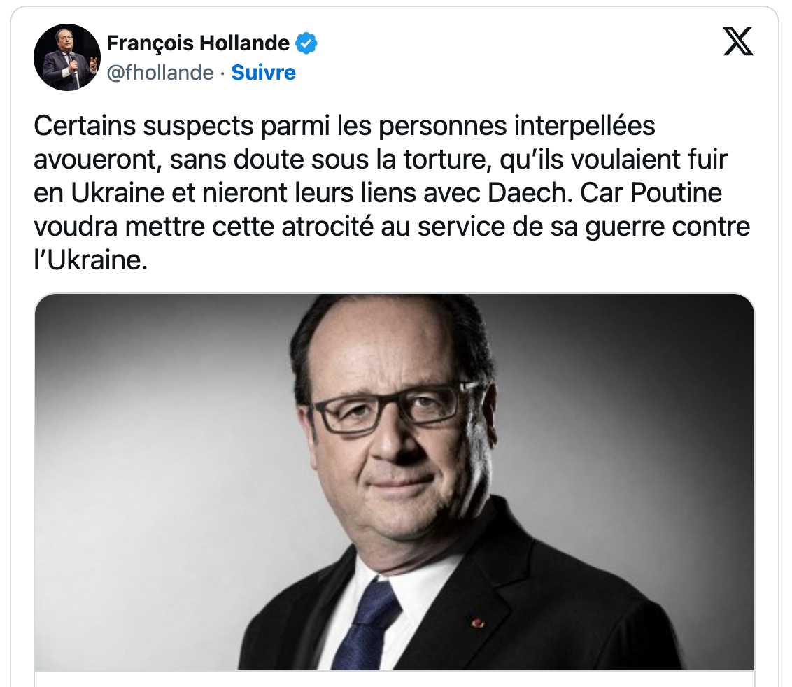 https://twitter.com/DrMadsGilbert/status/1770391193752306043Si les Ukrainiens avant que la Russie n'envahisse, avait fais une attaque et abattu de sang froids 1500 personnes dont femme + enfant + jeunes adultes à un festival, couper des têtes, et violer en masse