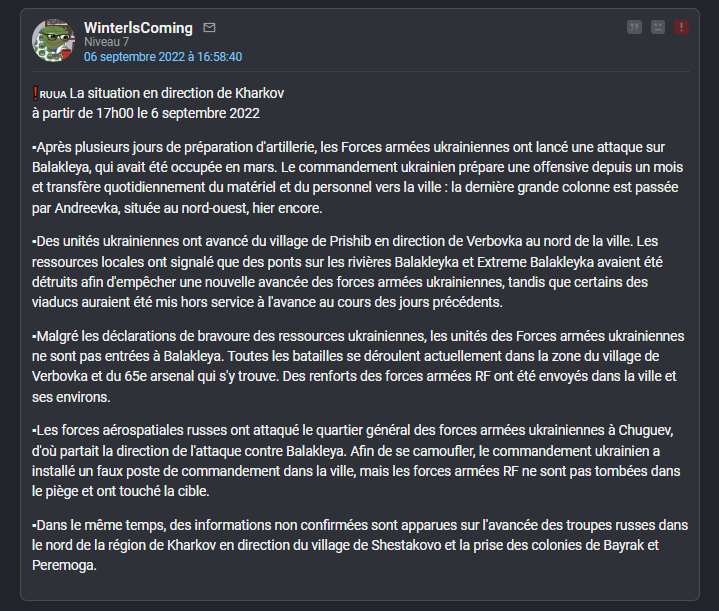 Faut pas croire que les Ukrainiens sont hyper motivés et suréquipés contrairement aux Russes c'est faux.