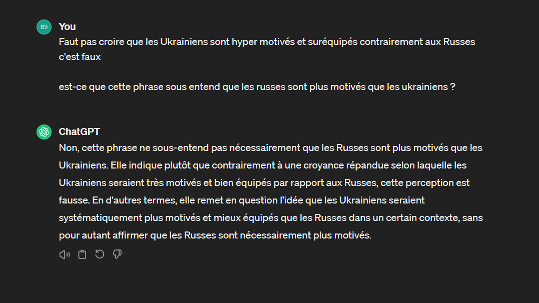 Faut pas croire que les Ukrainiens sont hyper motivés et suréquipés contrairement aux Russes c'est faux