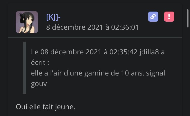 Va voir la gonzesse que j'ai posté en plus elle est géechar à mort, rien d'une gamine il est zozo