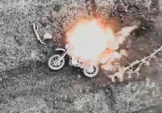 Une moto au sol, une petite explosion ajoutée via photoshop