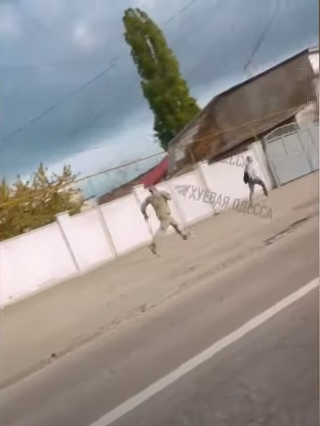 Puis les ukrainiens reculent face à des soldats armés de pelles...