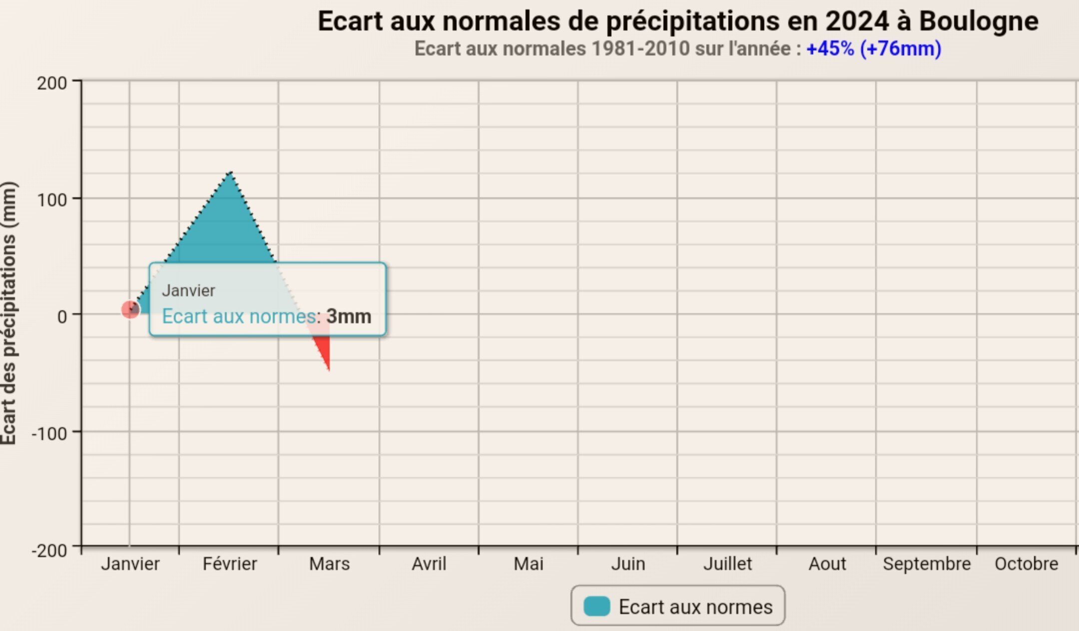 Sur février 2024 on a 122mm d'écart par rapport aux normales de précipitations.