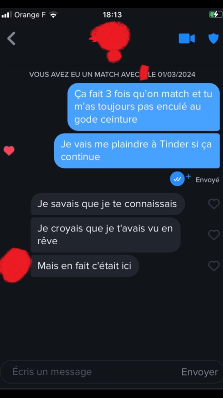 Avec le mien en guise de premier message je lui est dit texto ce qu’elle avait marqué dans sa bio "je sais pas si tu realise mais tous les jours j’ai plus de 50 match alors soit original" et ça lui a meme pas paru suspect