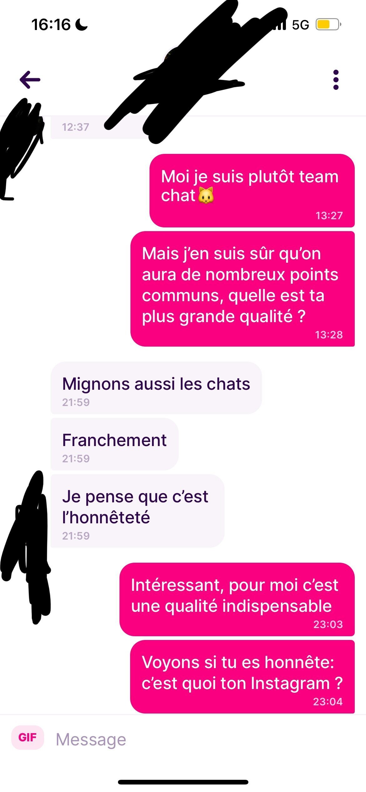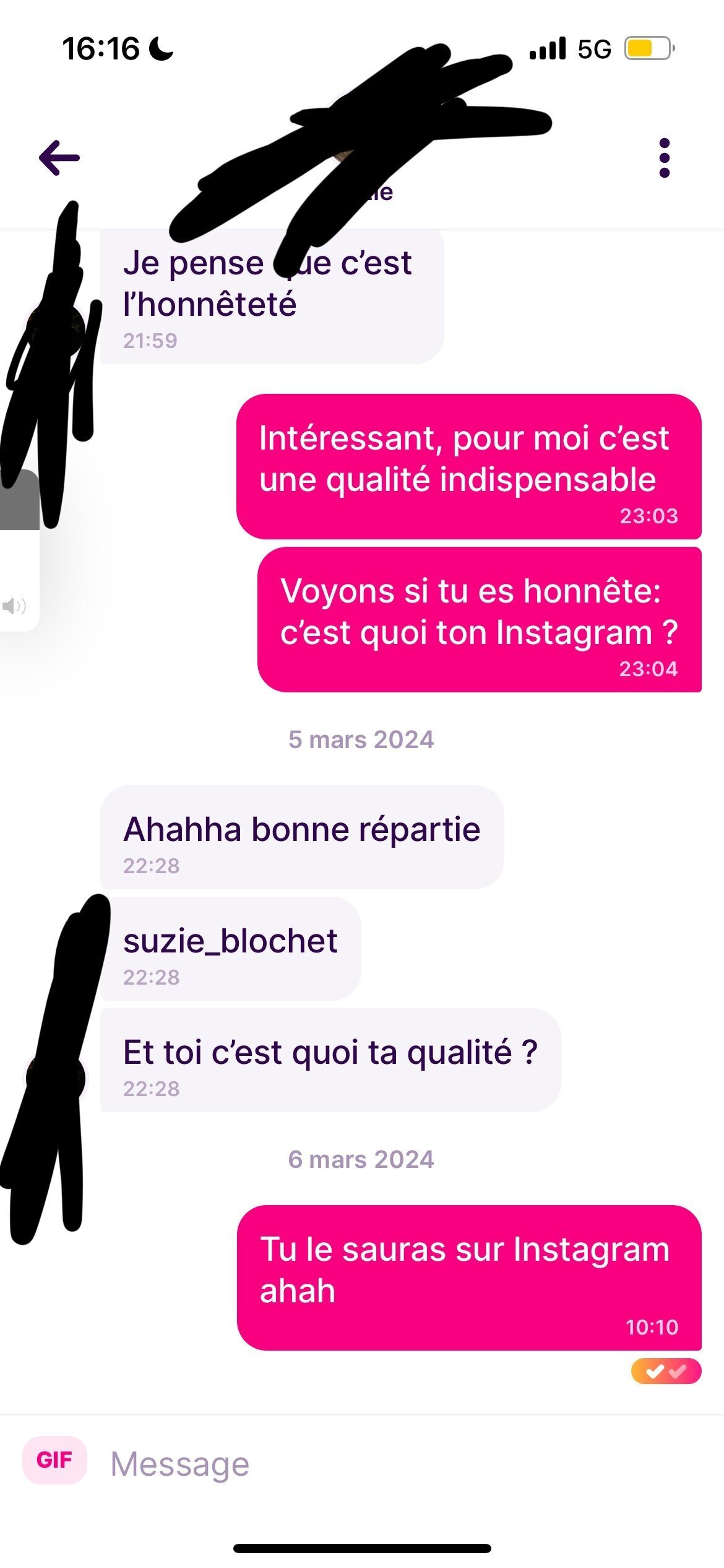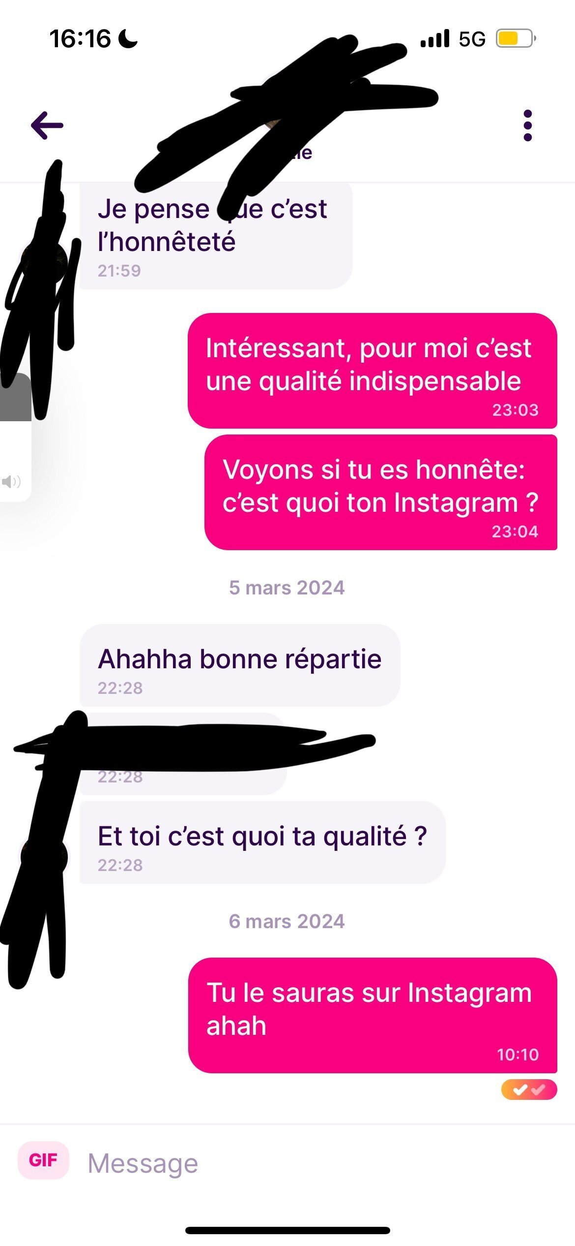 l'OP arrive et montre quelques screens sympas où il a du succès > la plupart des kheys lui disent qu'il a de la chance de plaire physiquement > ongle-peigne-cul se ramène en mode grand sage pour essayer d'insuffler ses pseudo pensées de psychologue de la vie et des relations sociales > il devient un énorme ragix et l'OP s'en fout royalement![]()