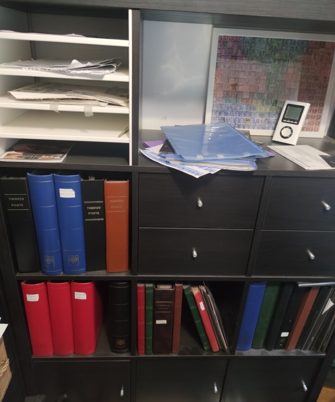 mon armoire de timbre avec la majorité de mes classeurs de tri et encore des milliers de timbres en vrac dans les tiroirs qu'il me reste a trier