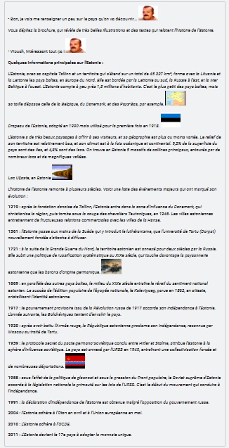Vous dépliez la brochure, qui révèle de très belles illustrations et des textes qui relatent l'histoire de l'Estonie.