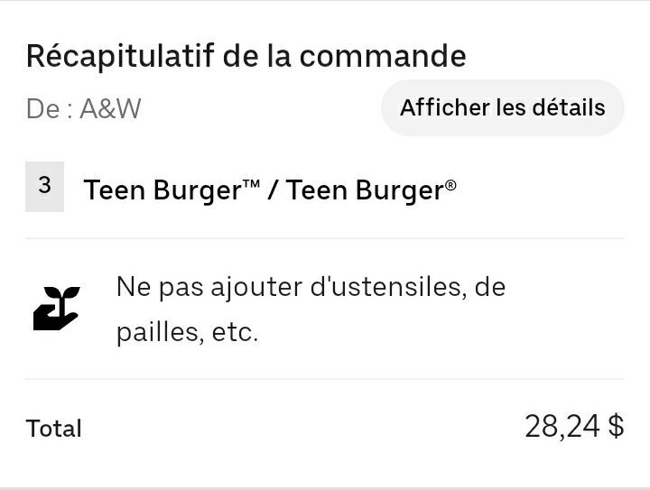 Le 03 avril 2024 à 19:12:43 Pikamy a écrit :Le prix ?Photos des burgers ou screen de la commande ?