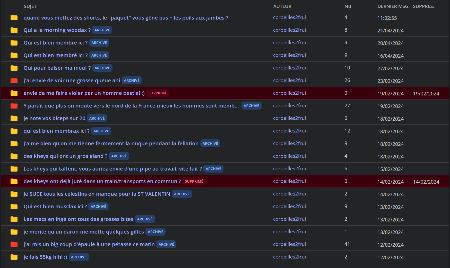 et il ne se passe pas une journée sans que ce vieil animal fasse un topic sur tinder, sur les gorges profondes ou sur le cul, c'est un véritable macaque