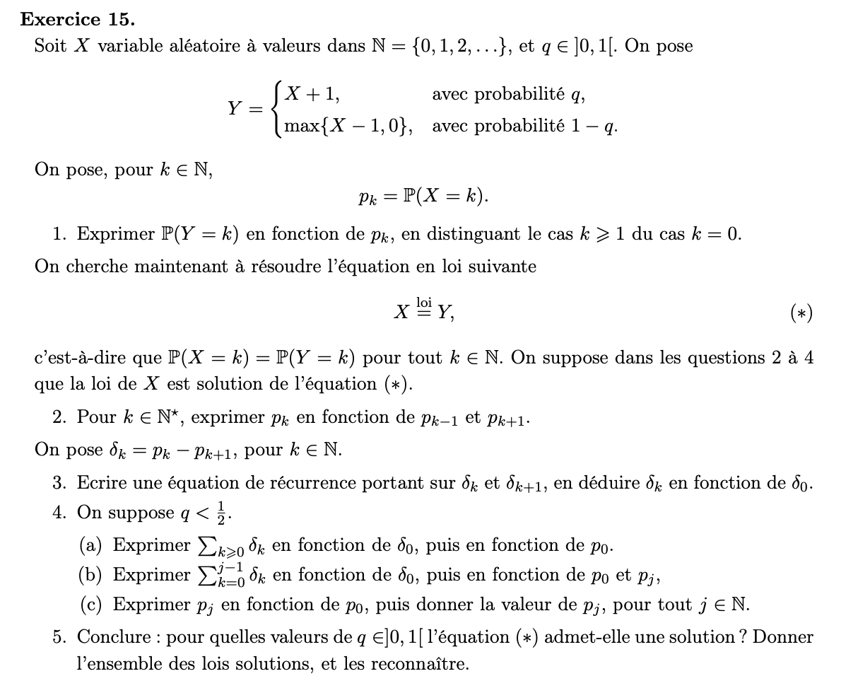 ça veut dire quoi avec probabilité q ?P(Y = X+1) = q c'est niveau terminale