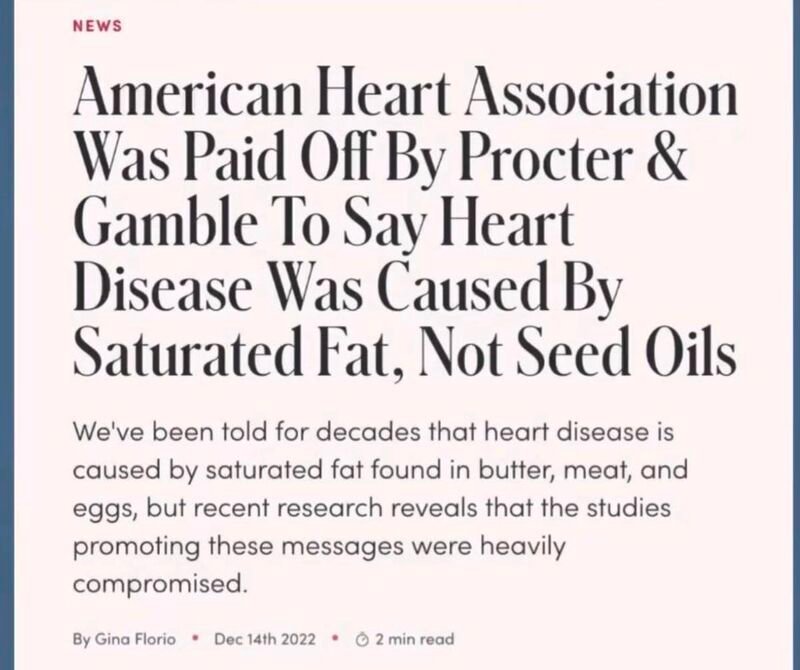 Le mensonge comme quoi les graisses saturées augmentent les risque de maladies cardiovasculaires a été débunké depuis longtemps