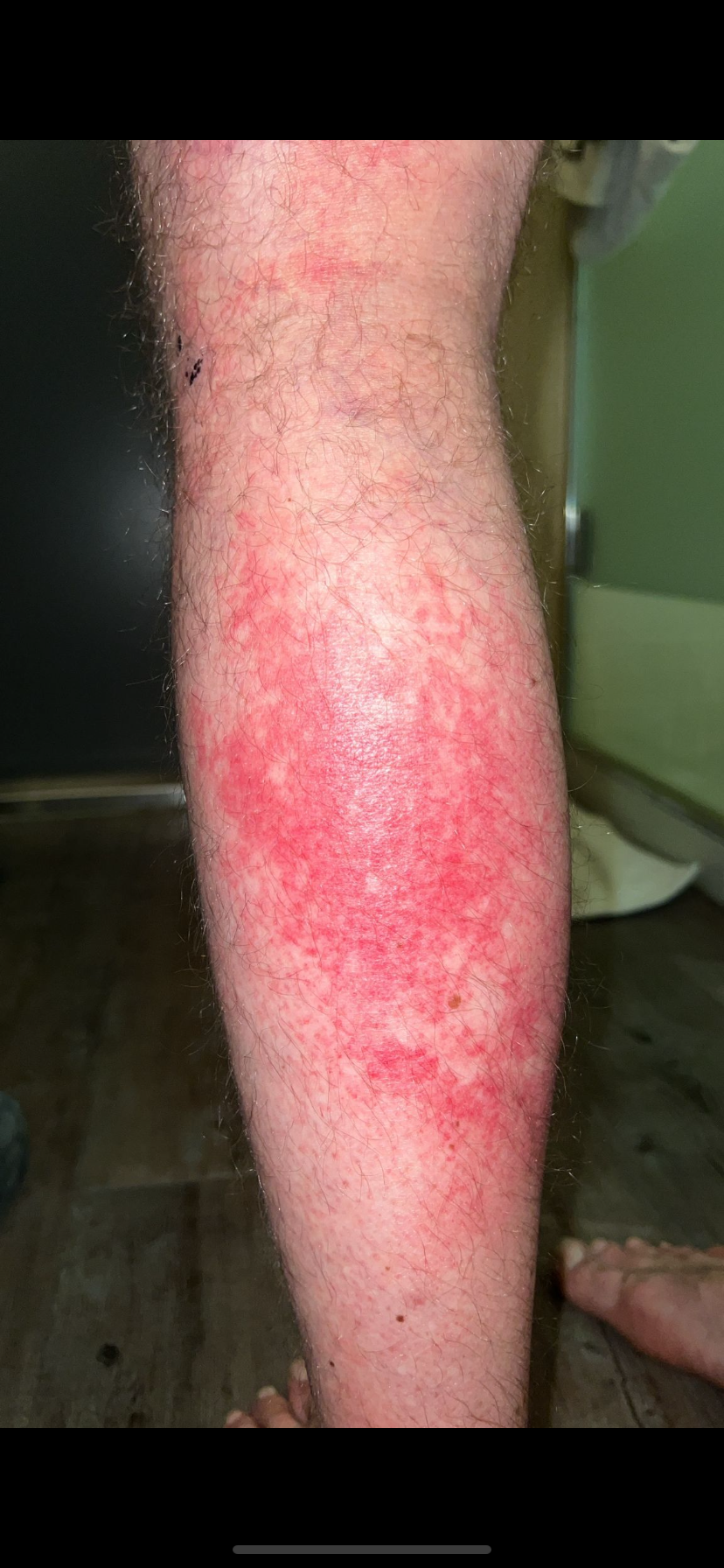 Ce qui m’inquiète c’est que depuis hier soir j’ai commencé a avoir une sensation comme d’un coup de soleil au niveau du mollet gauche, sauf bah c’que c’est pas ca