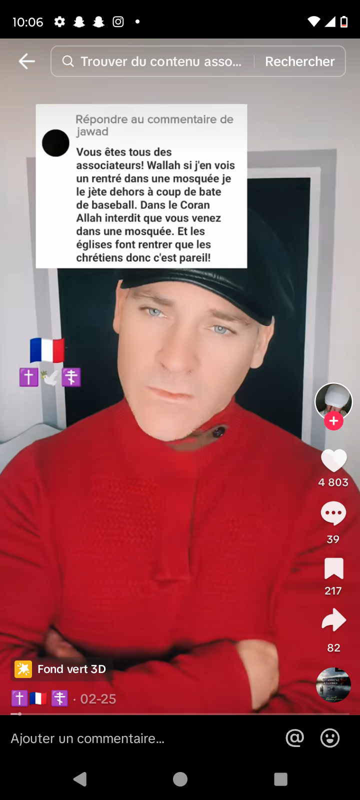 En utilisant des centaines de faux screens (va savoir le temps que ca lui a pris) de soi disant musulmans s'attaquant aux chretiens en les traitants de kouffar ou je ne sais quelles betises, un échantillon :