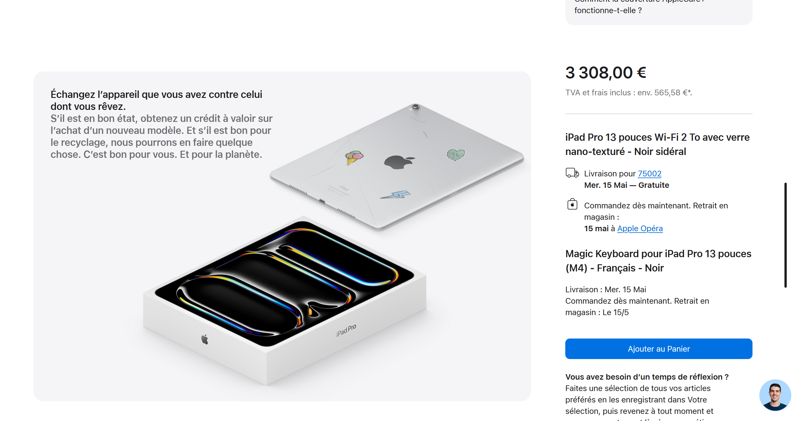 ayaa oui je viens de regarder, 2100 pour le 13 pouces pour une tablette sur ipad os