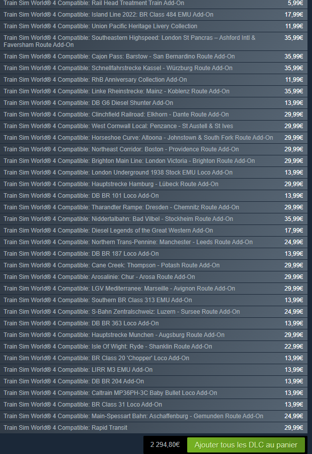 Train sim World est un petit joueur par rapport à " Train Simulator " et ses 10 000 euros d'expansion