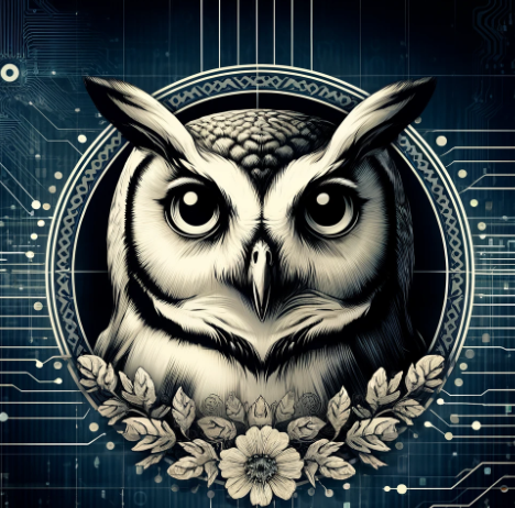 'Créature Totémique:' Le hibou, pour sa vigilance et sa capacité à percevoir au-delà des apparences, reflétant la prudence de l'auteur face aux jugements algorithmiques.