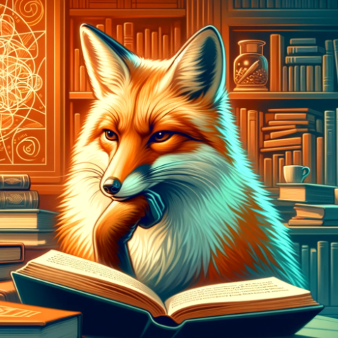 'Créature Totémique:' Le renard, symbole de ruse et de critique astucieuse, reflétant la nature analytique et perspicace de l'auteur.