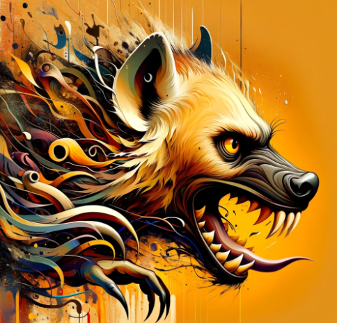 'Créature Totémique:' La hyène, symbole de chaos et de provocation, reflétant la nature chaotique et provocatrice du texte.