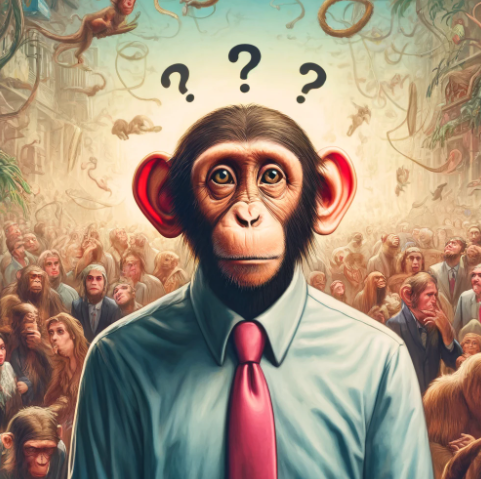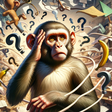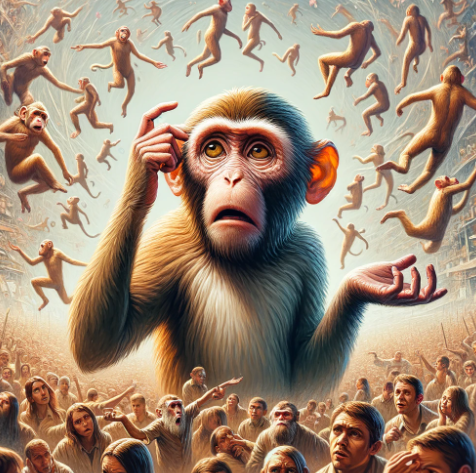 'Créature Totémique:' Le singe, symbole de confusion et de distraction, reflétant l'incapacité à suivre des instructions simples et la tendance à l'inattention.