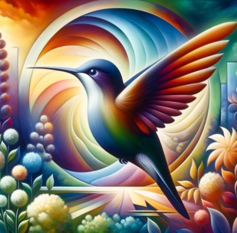 'Créature Totémique:' Le colibri, symbole de paix et de positivité, reflétant la nature tolérante et idéalisée de l'auteur.