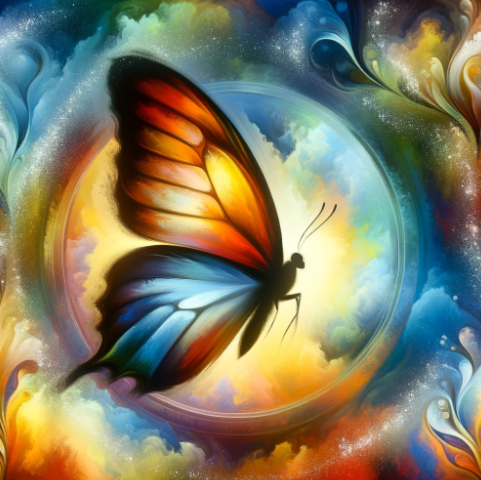 'Créature Totémique:' Le papillon, symbole de transformation et de légèreté, reflétant la nature poétique et introspective de l'auteur.