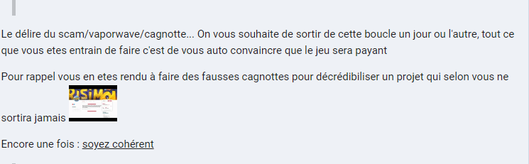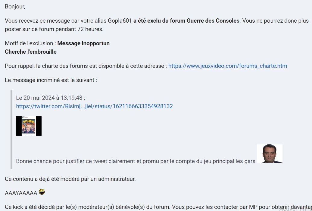 D'ailleur le message en question a ete delete sans aucun message, le discord qui chiale a l'administration