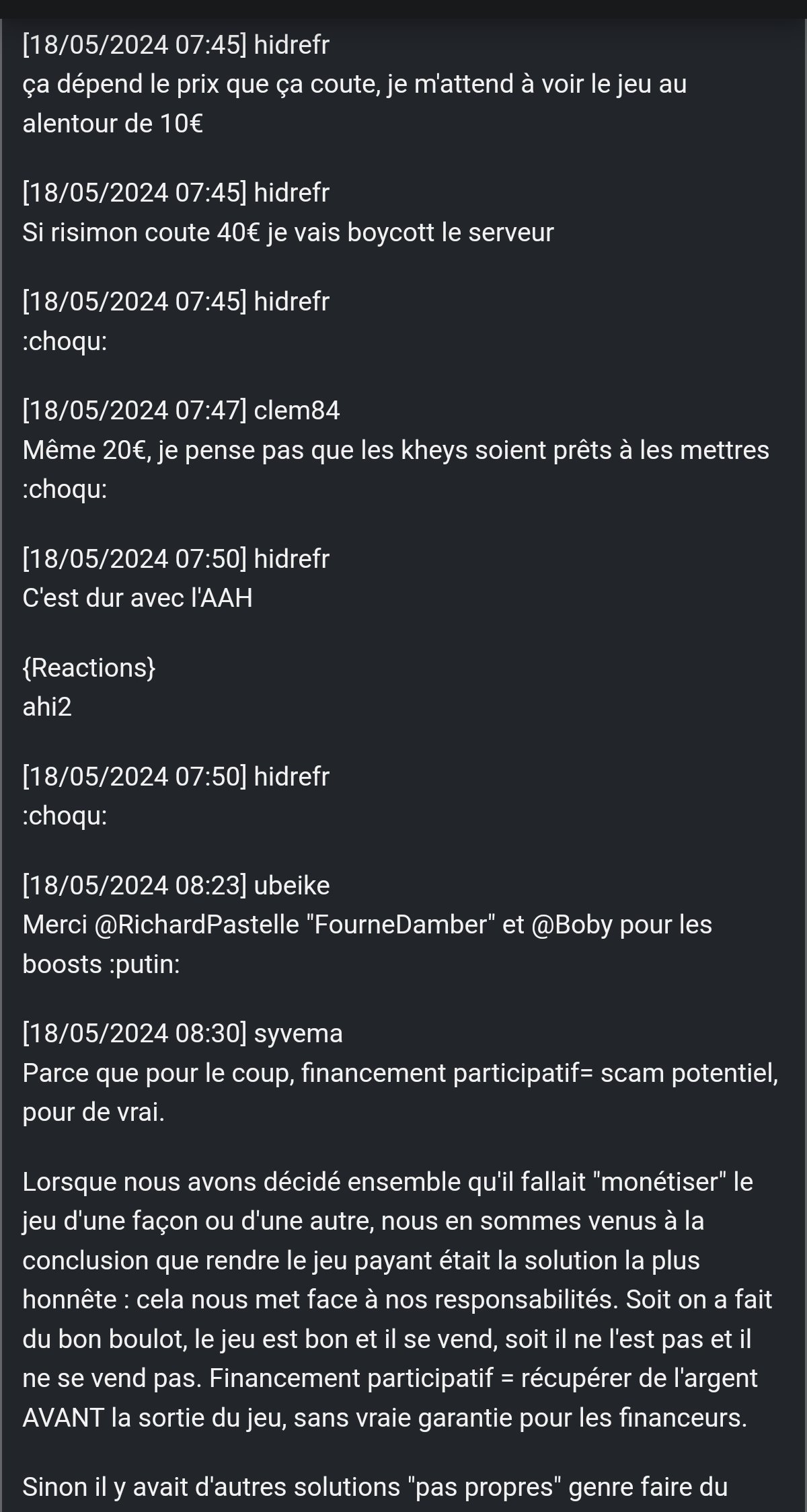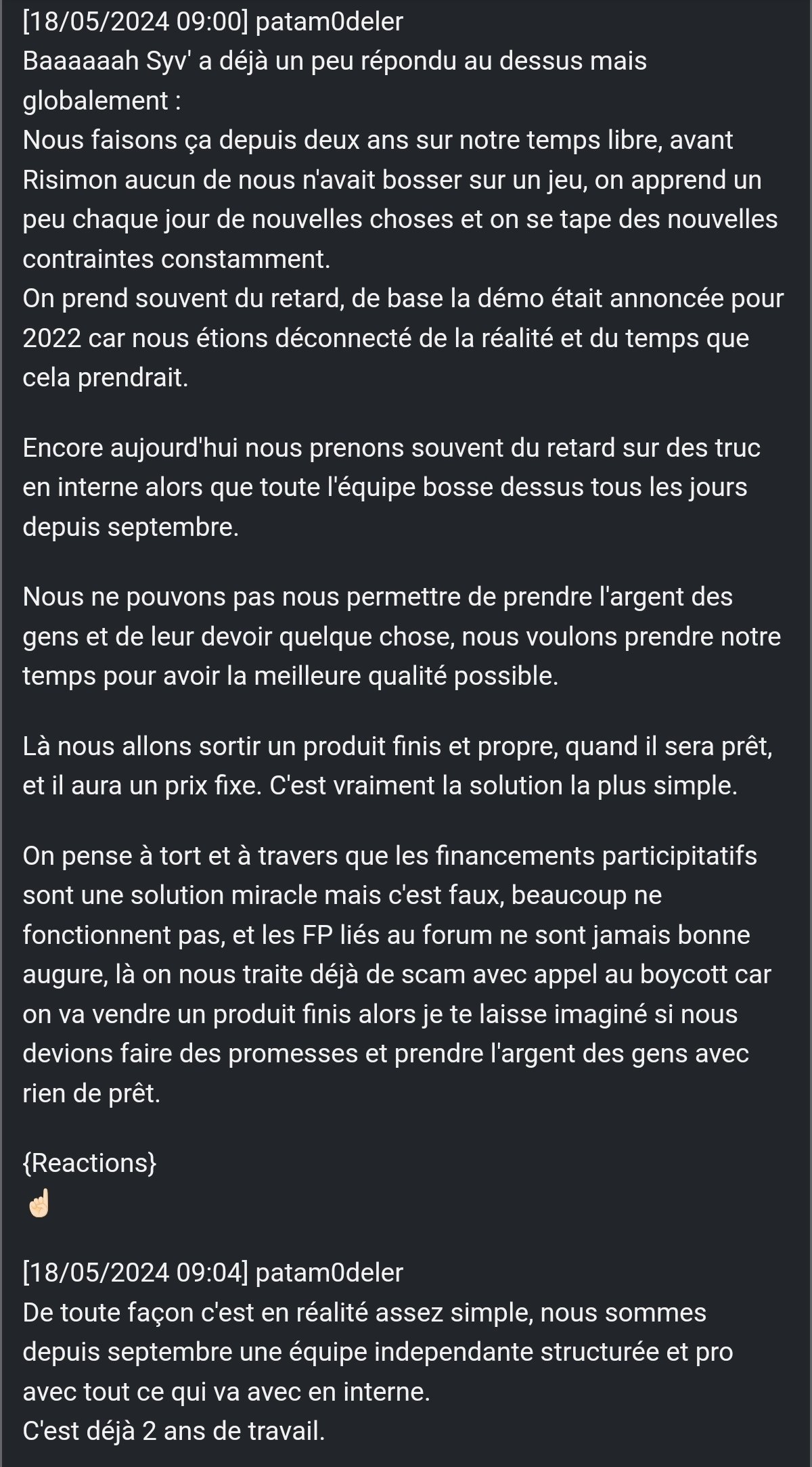 Que je veux te montrer, c'est que des projets sains y'en a, mais quand y'a zéro support de la part d'une comu en particulier, même si tu l'apprécie, tu finis pas t'en détourner au profits d'autre comu (Ou tu te fou de leur gueule en leur facturant un produit imaginé et créer en partie par la comu elle même)Oui donc tu es juste triste car les kheys ont pas réagi correctement à tes projets