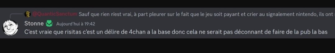 Après j'avoue, ma provocation d'origine était complètement gratuite, c'est juste que j'ai vu plusieurs fois le screen où Chocorat agaissait comme un connard avec Force-Fluide en le prenant de haut, et j'ai saisi l'occasion de m'en prendre à lui, comme une punition karmique