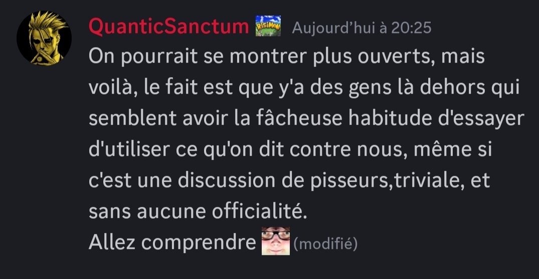 ) et un pseudo blanc (donc un random qui n'est pas de l'équipe risimon) tu peux me montrer ou sont les insultes au forum Tartuffin ?