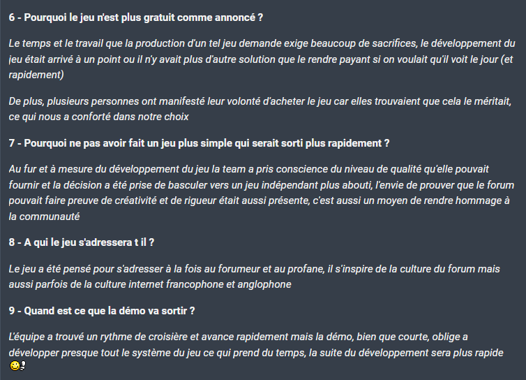 Et puis rendre hommage au forum en rendant le jeu payant, ce n'est pas dans l'esprit de l'élite de la Nation.