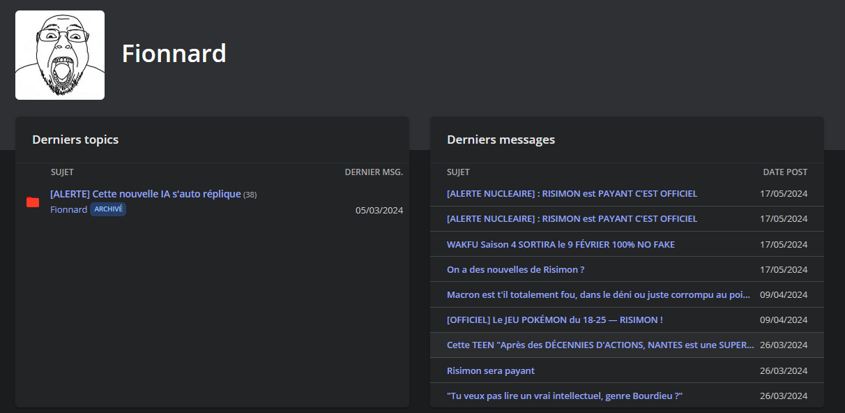 C'est un membre de l'équipe qui vient juste pour upper les topics risimon avec 10 secondaires.