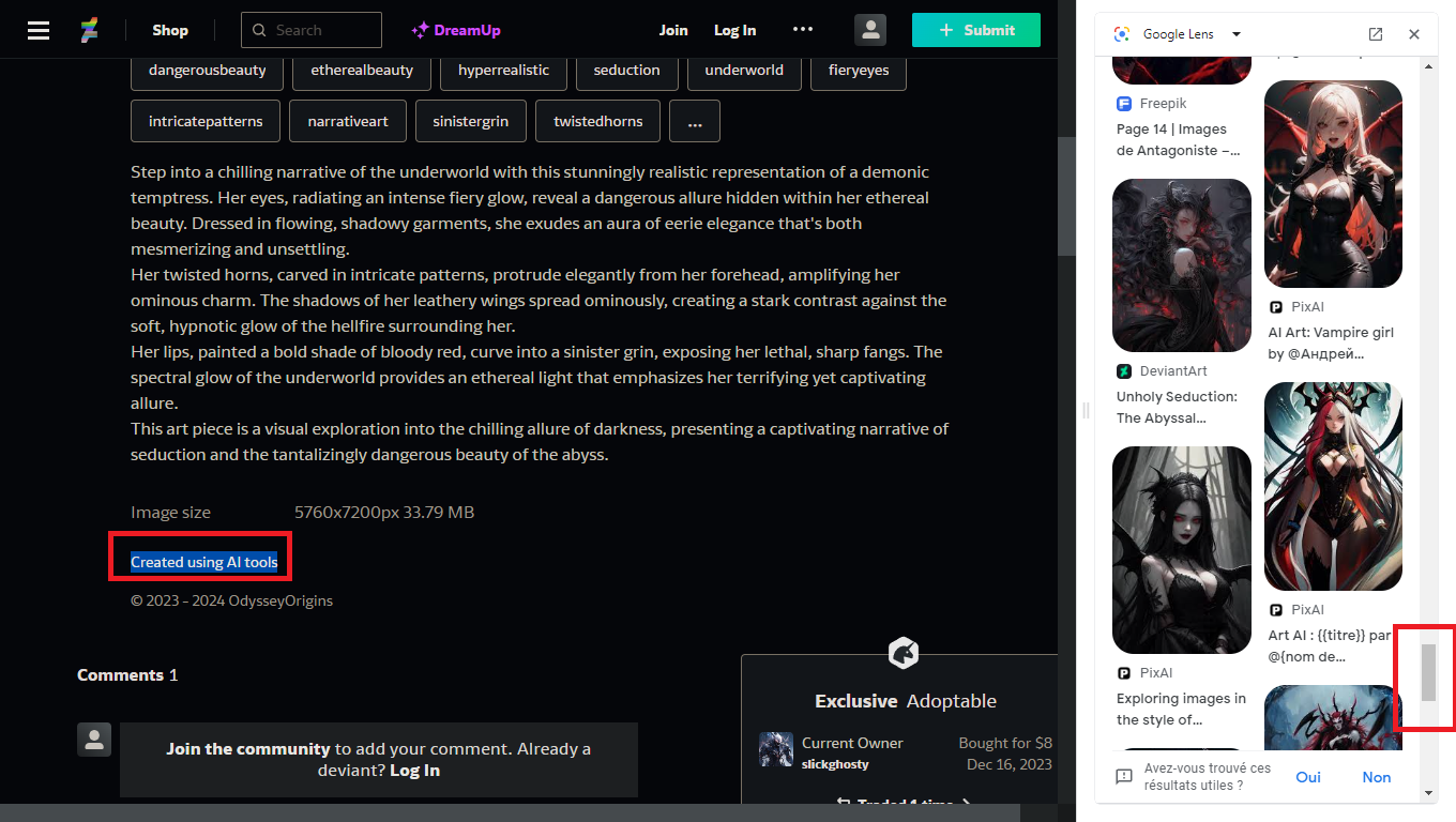 J'ai voulut tester l'affirmation de "l'IA plagie les artistes" en faisant une recherche inversé d'une image générée via midjourney