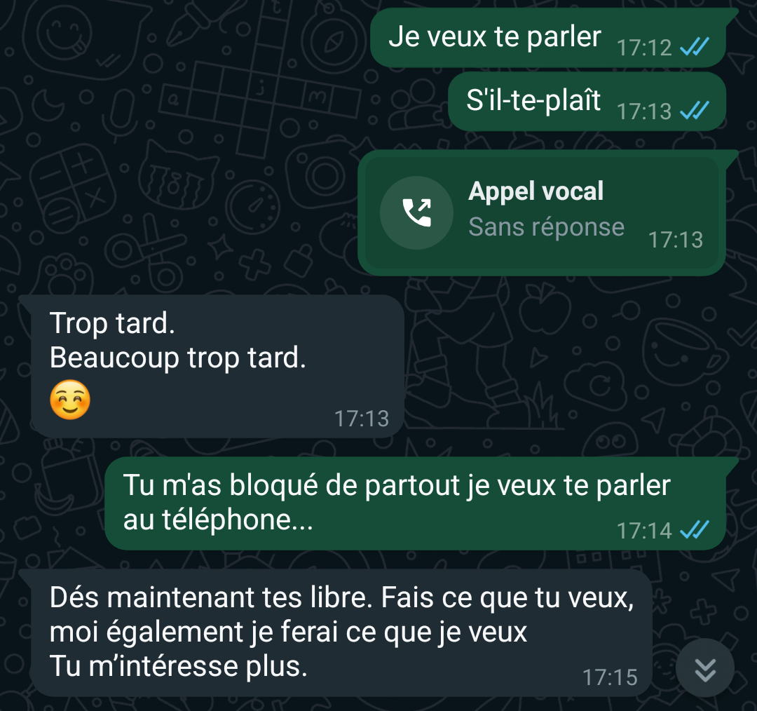 Ayaa l'op qui ignore mes messages et reste dans son déni.