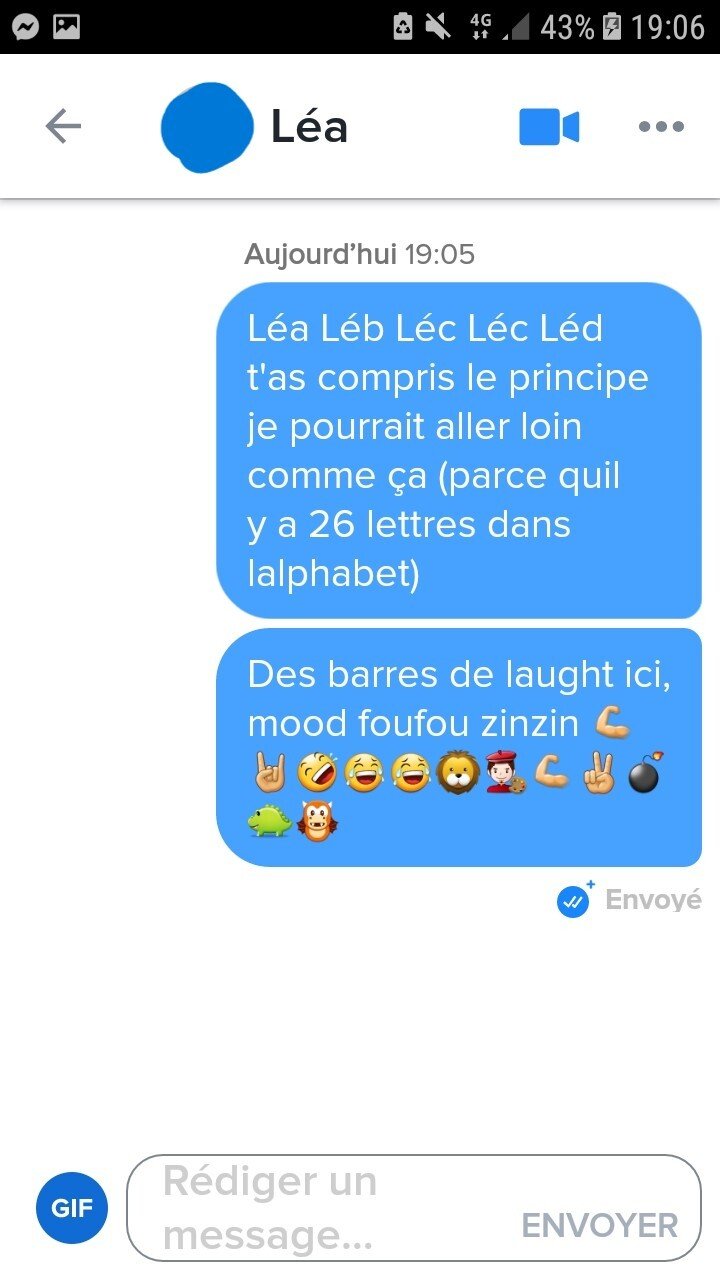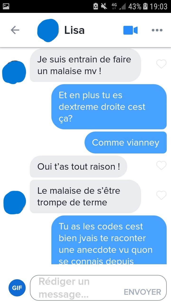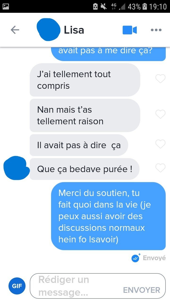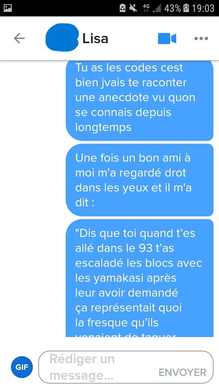 > >Salut khey. C’est cool que tu sois sur tinder, j’espère que ça fonctionnera pour toi