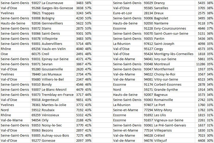 Liste des communes où LFI a fait + de 30% aux Européennes, que des shitholes où y a du trafic