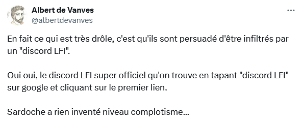 " Et oui les fachos, il n'y a aucun insoumis infiltré sur ce forum. Vous êtes juste complotistes