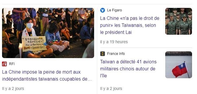 Pour info, la chine (qui veut prendre Taiwan) commence à faire des carabistouilles depuis quelques semaines